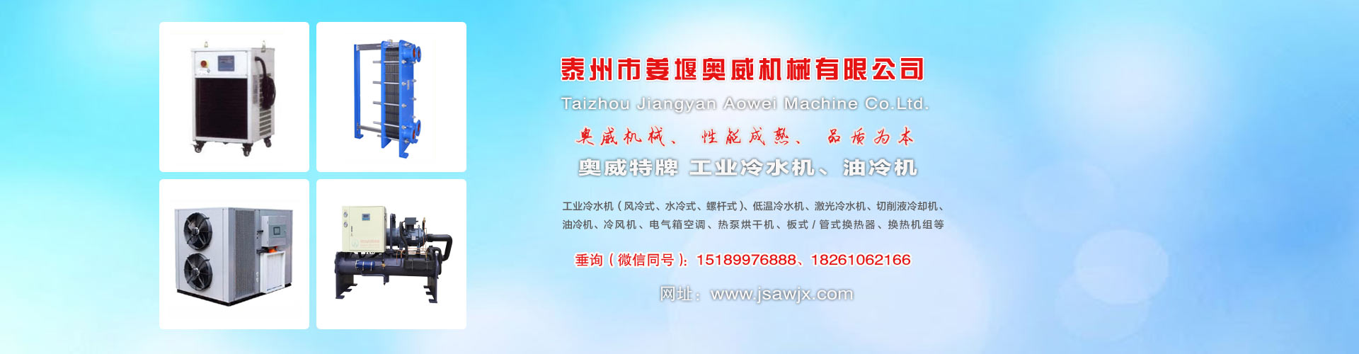 江蘇省,泰州市姜堰奧威機械有限公司,我公司是工業(yè)制冷設備,工業(yè)冷水機,油冷機,冷水機生產(chǎn)廠家(15189976888),公司集研發(fā)、設計、制造、銷售于一體。擁有20多年冷水機,油冷機,風冷式冷水機,水冷式冷水機,低溫冷水機,工業(yè)冷水機組,豐富生產(chǎn)經(jīng)驗,產(chǎn)品以成熟的品質,穩(wěn)定的性能,獲得到了廣大用的贊譽。